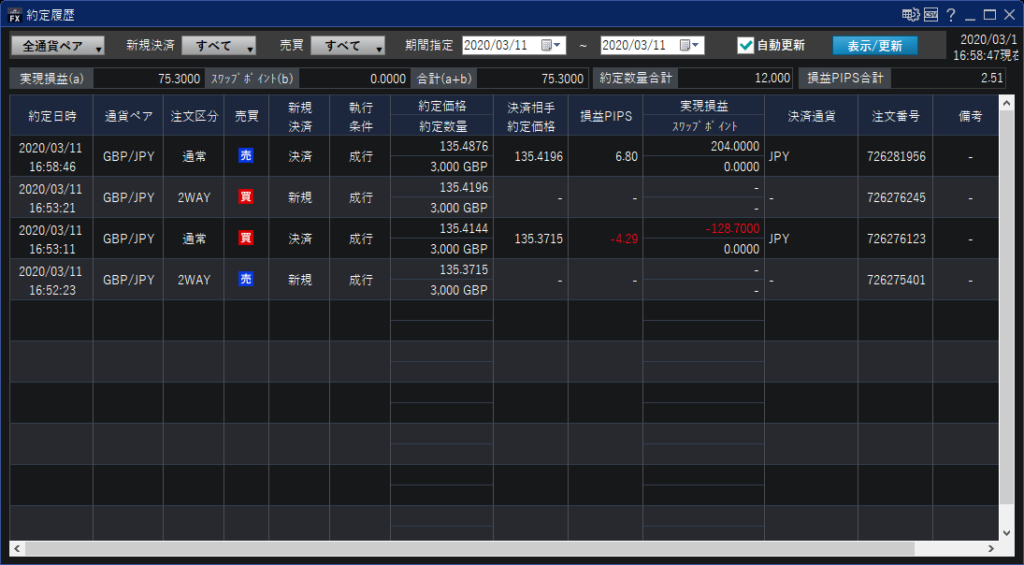 これで精神状態が乱れた。すぐに切ってまだ上の余地があると判断できた位置だったので改めて買いで入り直した。