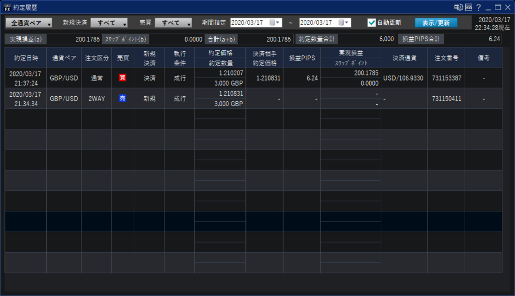 21:20位からトレードスタート。