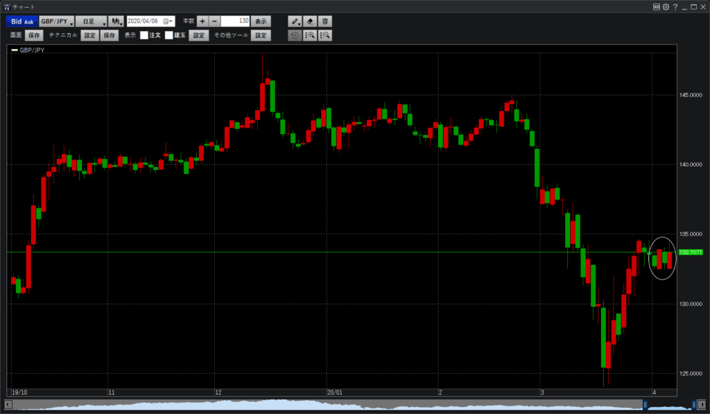 でもこのブログを書いている時間では日足に大きな動きはない。