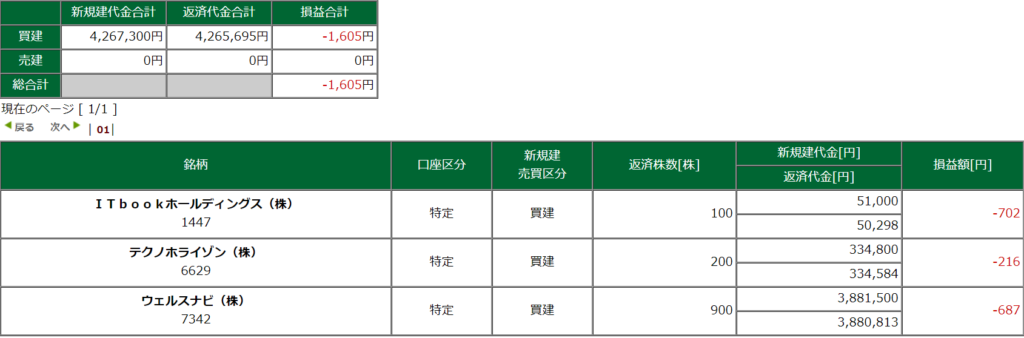 下げを拾い損切りを繰り返して早い時間に損失額が拡大しました。現値より1ティック上で指して損切り狙うと大きな株数を被せられ大きく値が下がり損が拡大しました。