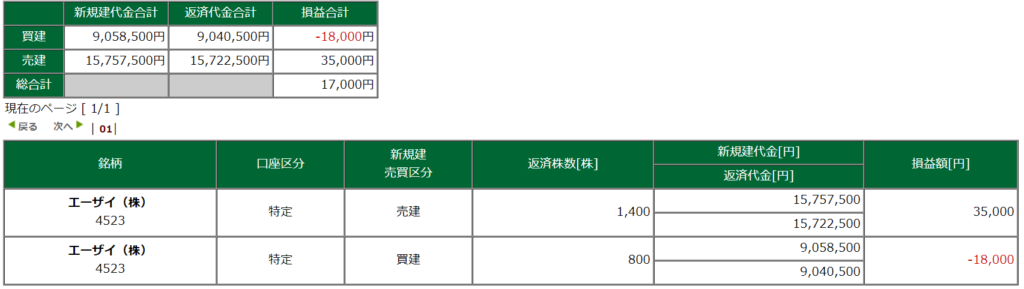 エーザイ、後場急に動かなくなる trading X Facebook はてブ LINE Pinterest コピー 2021.06.162025.10.02 後場は静観でした 今日も朝からエーザイを触ってましたが、後場はほとんど見てるだけでした。 今朝も寄り後すぐに25,000円位負けて、今日こそ終わったと思いましたが何とかプラスに持っていけました。 フライング気味に甘い価格で入って、約定してやっぱりすぐ損切りというパターン繰り返しました。このロスと気の緩みを気を付けようと思います。