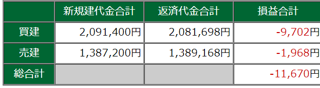 2000円マイナスのところで損切りして、次のチャンスを待てれば成長していたけど、いつもの通りそれが出来ず、次の取引も早く手が出てしまう。