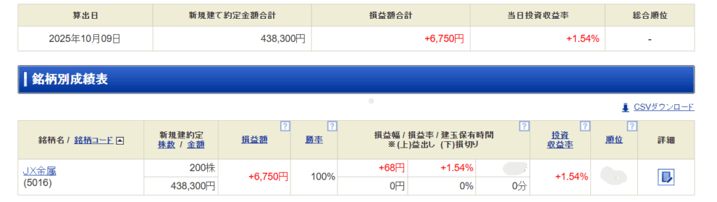 その一瞬で含み益が膨らんだから様子見をしたらさらに少し利益幅が増えたっていうだけ。それで満足している。